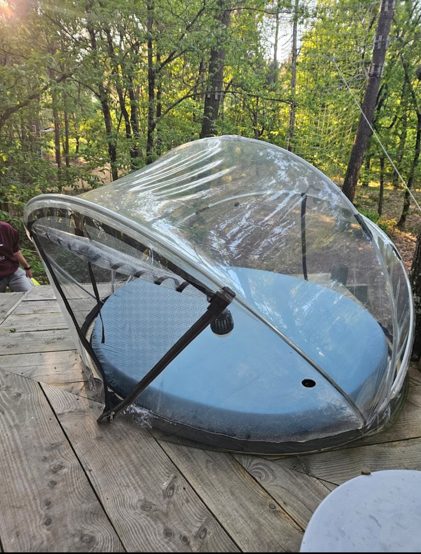 Nestled in trees 3 meters high, your little bubble welcomes you for an unusual night. Surrounded by greenery, in the very heart of our forest,you stay warm and safe !!!!